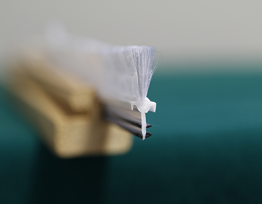 Lo spazzolino viene saldato direttamente sulla parte superiore del profilo in plastica e presenta una cucitura a metà della sua altezza, che potrà essere rimossa in fase di montaggio.